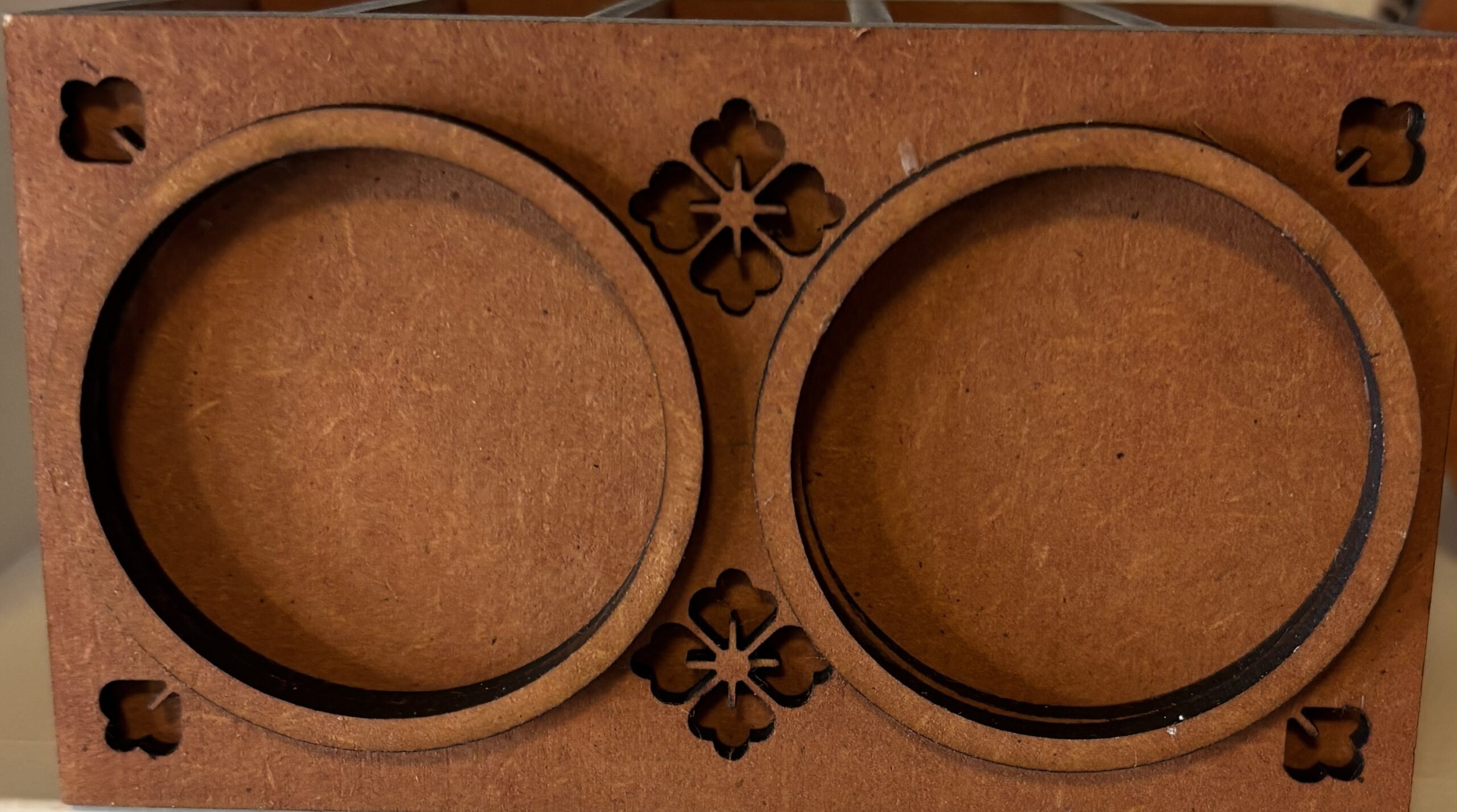 Laser-cut stained wooden bookmark.