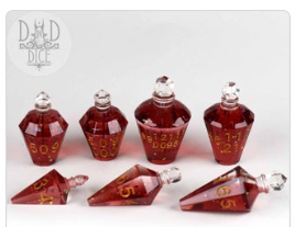 Packaging: Bottle 7 Dice Set Includes: * 1-D4 (32mm) * 1-D6 (38mm) * 1-D8 (43mm) * 1-D10 (32mm) * 1-D% (32mm) * 1-D12 (36mm) * 1-D20 (39mm) Material: Resin
