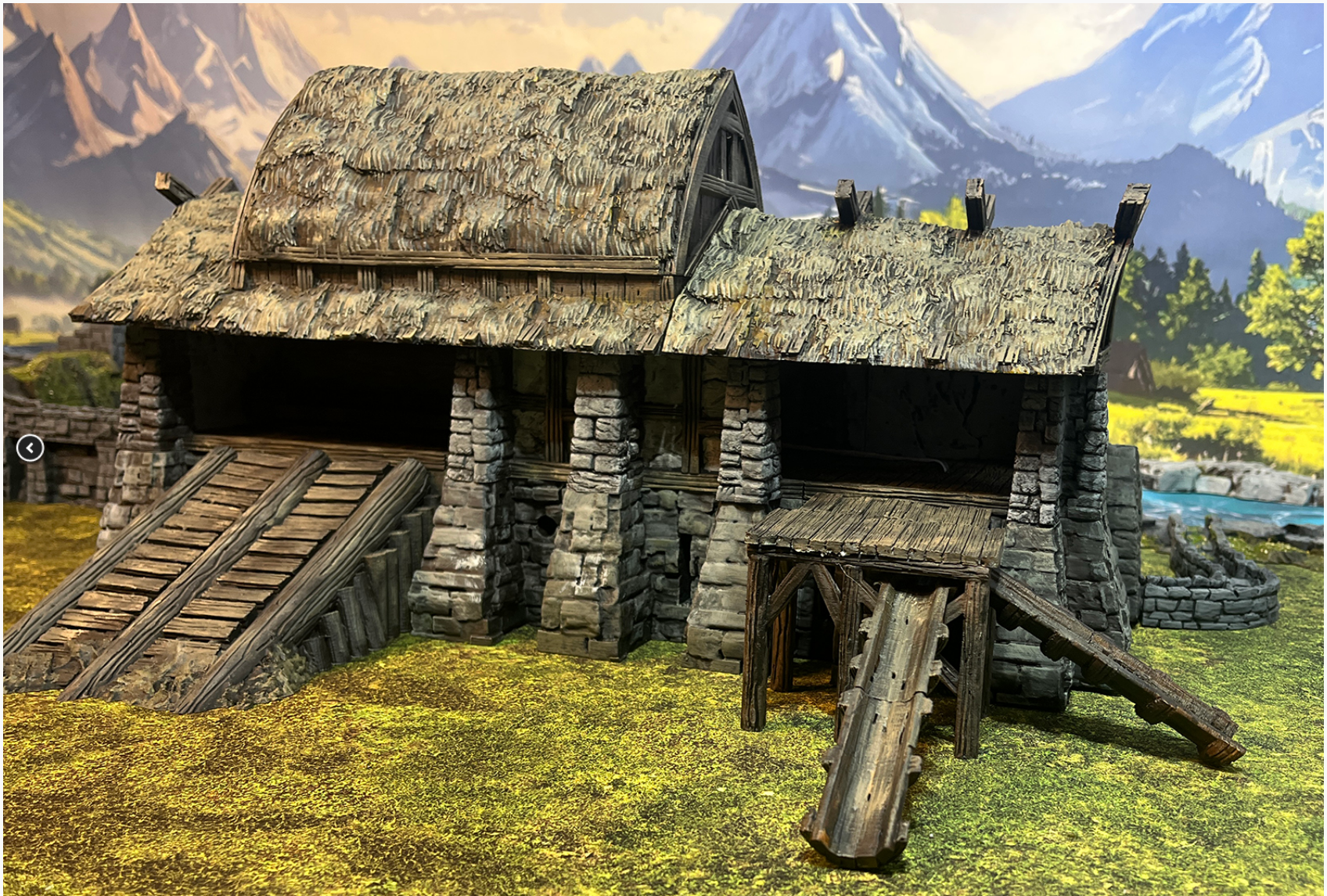 3D-printed building designed by Gamescape 3D. The sawmill is 3 floors tall with a ramp, platform, and auqaduck conection included.